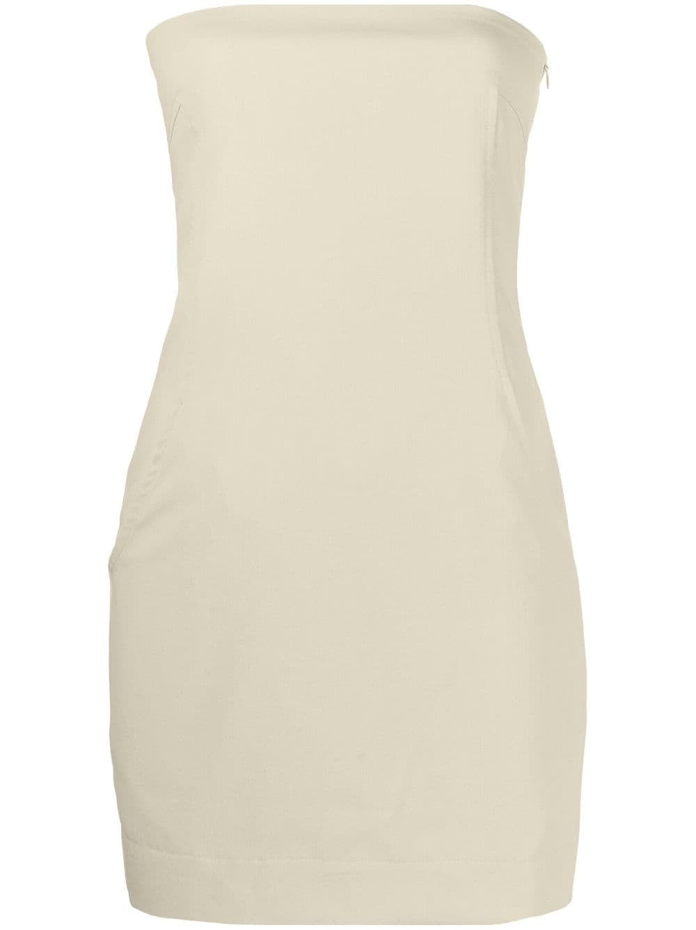 Paris Georgia's Audrey Strapless Mini Dress in fawn is a modern classic. Largely inspired by '90s minimalism, the Audrey minidress has understated colourway and a sleek tube silhouette. The panelled construction features welt pockets and a zip closure at the side seam.